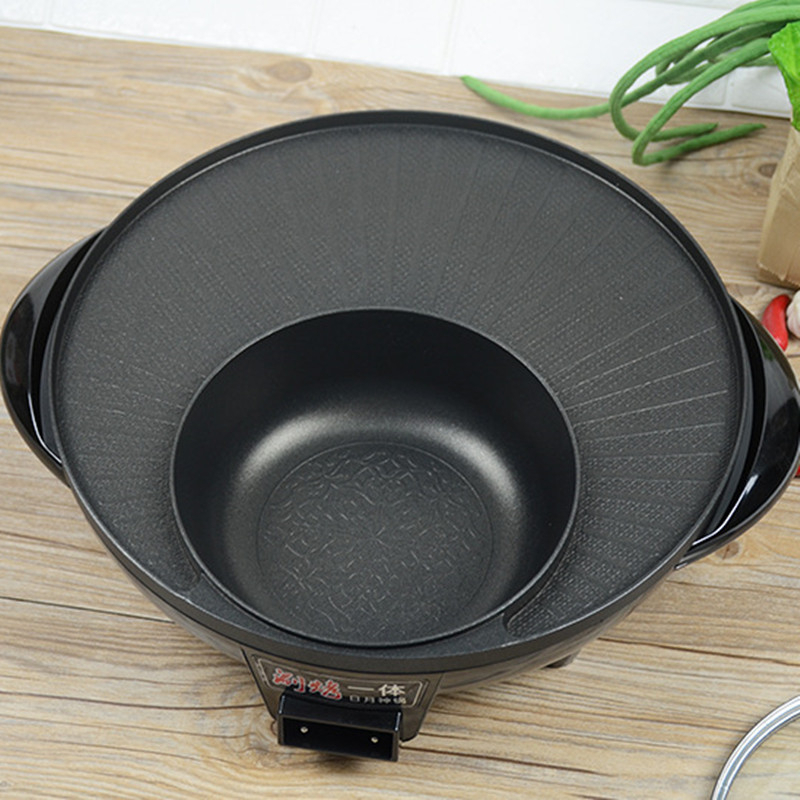 Caractéristiques:Matériel: matériau en alliage d’aluminium coulé et revêtement antiadhésif, sûr et durableSuper contrôle de la température: contrôle de température réglable à cinq vitesses, la chaleur peut être ajustée à volontéPot à double usage: profitez de deux types d’aliments différents pendant la cuisson et le pot chaudMéthode de contrôle: tournez le bouton pour régler la puissance de feu, plus sûrPuissance: chauffage rapide haute puissance 1700WTaille: 36CM